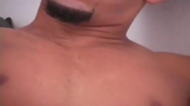 Jay is an 18-year-old stunner with a smile so white it is almost blinding, a manner so charming you immediately want to ask him out, a sexuality so laid back he gives you a hard on before you even realize it, and what could quite possibly be the world's most delicious ass: flawlessly muscular, perfectly round, and unquestionably 100% cherry. Seems like such a waste for a butt that wet dreams could be inspired from belongs to a guy as straight as they come, but after we saw what he is sporting on the front side, we almost forget about that prime real estate in the back. His mouth-watering, nine-inch beauty is just like the rest of him--absolutely perfect!nMaybe it's the well-trimmed goatee and mustache that make Jay look older than his 18 years, or perhaps it's the intense smoldering quality of the passing gaze from those deep brown eyes that make it appear that the man looking into the camera possesses an endless sexual repertoire of a very experienced erotic virtuoso. Whatever the cause, the effect is only intensified as Jay removes his shirt to reveal a torso almost totally devoid of hair, with arms rippling with natural muscle. The view just gets hotter as he slides out of his jeans and reveals a pair of grey boxers that despite being baggy, cling to the outline of what seems to be some heavy cargo. Jay mounts the bed and slowly shimmies out of his shorts. As the curves of that luscious ass begin coming into view, they do so without any hint of a tan line. The purposeful undulations as he grinds away on the mattress are those of a lover who has his partner's satisfaction as the launching pad for his own enjoyment. As Jay turns over, the golden sheets cling to the outline of his now very erect cock as he makes a two-fisted grip on the mighty slab over the fabric to show that silhouette of ultimate temptation. All eight inches are throbbing in Jay's hand as he strokes with the slow, steady rhythm of a man who knows just the kind of grip he needs for the ultimate pleasure. With his legs spread wide, his sack is already bloated between his thighs. Though Jay has seemed almost indifferent to the camera, he now locks eyes with the lens and makes it seem like he is fisting that meat just for you as he rubs the precum into the head. Standing up, that cock sways back and forth under his dark, trimmed bush, and swings from side to side like a big heavy pendulum of delight. Getting a tighter grip and moving faster, the slow easy road to fulfillment has been replaced by a fast track need to seed as he strokes double time. With one final, beckoning look into camera, Jay fires off a massive load where the first splat crashes down on his upper pec, the second lands on his lower abs with a couple more spurts going even farther until they land in a puddle on the blanket to his side.