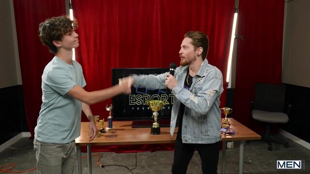 - Description: At the championship esports tournament, reigning champ Sam Ledger is sure he's unbeatable, but hungry challenger Jake Preston will do whatever it takes to win. Jake starts by going in for a kiss during the pre-game handshake, looking for Sam's weak spot. During their game of Anal Cumbat, Sam takes an early lead, but Jake pulls out his "joystick" to distract him at a key moment, stealing the win and the title! After the match, Sam corners Jake backstage, pushing him up against the wall... and eagerly sucks the top's hard dick. Jake rims Sam and fucks him in his gamer chair, then sucks the bottom. Sam rides the new champ's cock and cums as Jake fucks him doggystyle, then the top takes his victory lap as he pulls out and shoots his load.