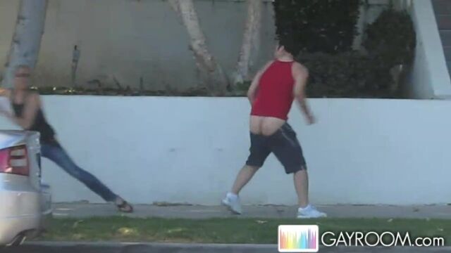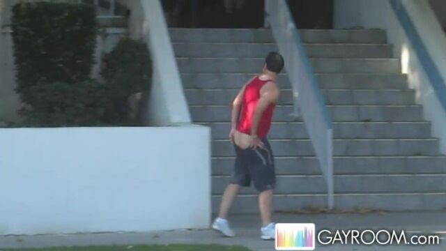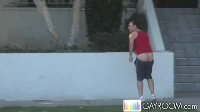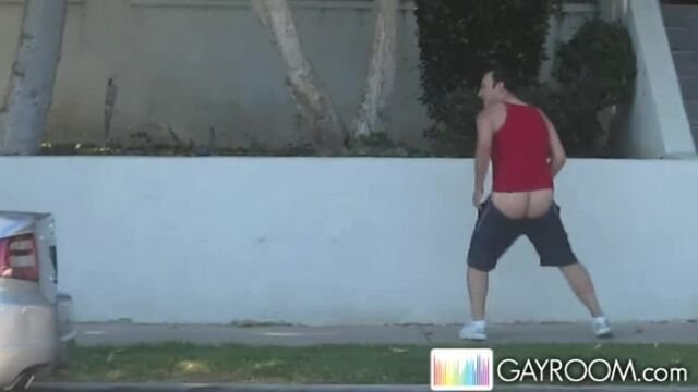 Sidewalk tease and booty flash from a horny gay stud - Gayroom