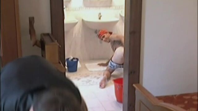 This starts with two young guys cleaning a hotel room. The guy that is vacuuming has a well built, nicely toned body (as you'll see later on!) and the other guy has a leaner body with a nice cute arse. Toned guy takes the end off the vacuum hose and puts the suction pipe to his cock, sucking his cock to a very nice erection! The other guy watches on and starts to play with his own cock as he is getting highly aroused. Toned guy goes to him and the pipe is replaced by the sucking of lean guy's mouth. Soon, with toned guy totally naked & the lean guy in just a vest top and cap, the lean guy has his bare, naked cock in the other guy's hot and ready arse. He pumps it in and then removes it totally to let you see the hole open and ready for it again.
