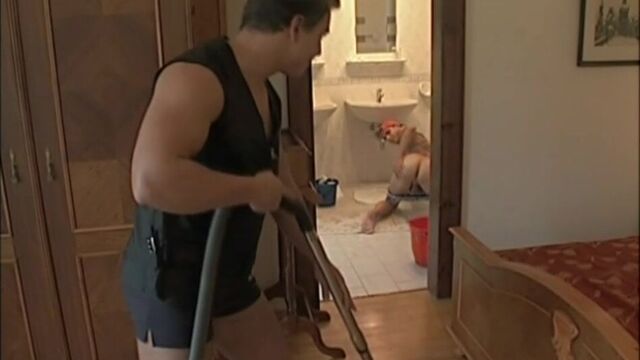 - Description: This starts with two young guys cleaning a hotel room. The guy that is vacuuming has a well built, nicely toned body (as you'll see later on!) and the other guy has a leaner body with a nice cute arse. Toned guy takes the end off the vacuum hose and puts the suction pipe to his cock, sucking his cock to a very nice erection! The other guy watches on and starts to play with his own cock as he is getting highly aroused. Toned guy goes to him and the pipe is replaced by the sucking of lean guy's mouth. Soon, with toned guy totally naked & the lean guy in just a vest top and cap, the lean guy has his bare, naked cock in the other guy's hot and ready arse. He pumps it in and then removes it totally to let you see the hole open and ready for it again.