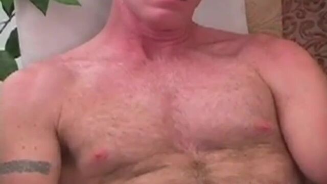 In the short year that 43-year-old Brett Anderson has been appearing in videos, he has become the Go Daddy. He has appeared for Titan in such hardcore hits as ManPlay25 and The Arcade on Route 9. We know he will fit in just as fine here at MenOver30.com, as we definitely support the belief that Father Knows Best. While being very active onscreen, Brett's own personal life has undergone a renaissance of its own, as he now hangs His and His towels in his master suite. It seems that, along with his new partner, this formerly strict top has recently learned to add the joys of being on the receiving end to his resume for the very first time. The joys of doing so while being deeply in love brings a happiness to his performance, as it does for us as well. One of the best parts of being over 30 is knowing what you really want. And for Brett, this is one man in his prime who is having the time of his life.Brett wastes no time in ripping out of his clothing to give us an up close and personal tour of his very well taken care of physique His flat abs showcase the fruit of his daily labor on the treadmill with a single tribal band tat adding definition to his well-worked arms. His body is dusted with a fine spray of light-brown hair. All it takes is one tweak of his nipple, and that seven-inch cock is fully engorged, pointing straight up at the ceiling and visibly throbbing, bobbing, and weaving back and forth, all on its own considerably-sexy accord. A deep, low moan escapes his lips as he continues a one hand stroke on that beautiful cock, which seems to grow another inch right before our eyes.Brett stands up, turns around and shows off that white ass, even spreading his cheeks to let us take a peek of that hole which, as we know, is no longer strictly just decorative. There is intensity in his face as he strokes with more purpose. This is not a man in a hurry; this is a man who knows how to work every inch of that sexy body to elicit the maximum pleasure from every touch. As he lies back, the moans get louder as he is lost in his own joy. One finger seems to disappear in the newly repurposed hole as he strokes away. Not missing a beat, Brett moves to the chair for some double-time stroking that leaves his balls high, tight, and ready to pop. And pop he does, all over his hairy abs. As the sperm continues to leak down his fist, his load peters out before his moans do. When it comes to men like Brett, experience is definitely the best teacher, and the curriculum definitely includes advanced masturbation!
