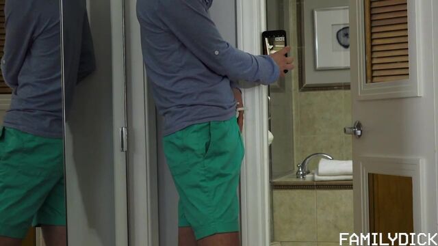 Wide-eyed Dandy is in total awe of his beefy stepdad as he enters the house after his morning run. His old man has been working out super hard ever since his wife left, and his stepson can see the gains. He follows his pop to the shower and touches himself as he takes a sneaky video on his phone. His stepdad catches him and invites him in, revealing his huge cock to the boy. They move to the bedroom and the old man lifts the boy up and fucks him bareback, completely dominating him. He teases his little boy with his fat cock by slowing going in and out of his hole, and the kid moans like crazy. Then, he shoots all over his stepson’s body, letting the boy lick the cum off his fingers.