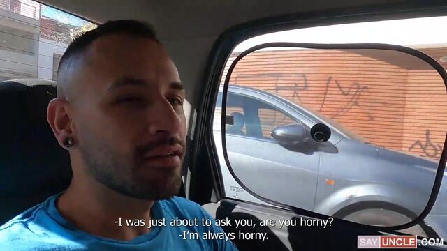 Milo is trying to get a cab when he sees Crixxx’s car parked, so he decides to check if he can pick a ride with him. When he approaches him, he notices him jerking off in the driver’s seat. Crixxx accepts to drive him but the two men don’t discuss the incident until Milo brings it up in the middle of the trip. Crixxx explains to him that he had just picked a hot Spanish stud, and had a nasty fuck session in a gas station nearby, but he still felt horny. Milo likes what he hears and offers Crixxx a helping hand. The two then find a private place so Milo can suck and sit on Crixxx's gorgeous cock.