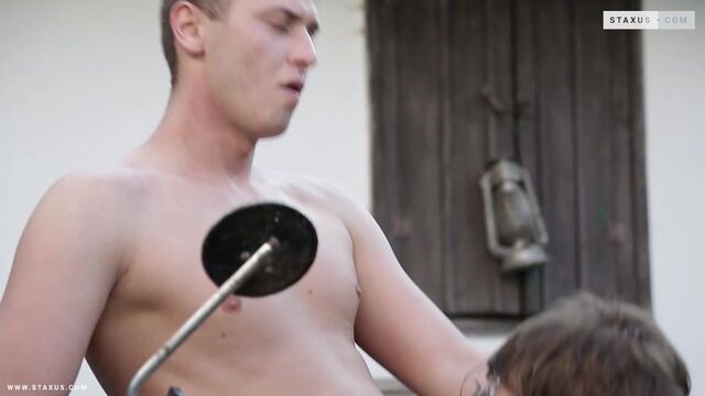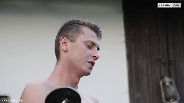 Young army recruit, Roman Smid, is feeling homesick – and no great wonder! Being stuck in the army, miles from everything that’s familiar, is never going to be a pleasant experience, after all. Fortunately he’s been teamed up with Oscar Ricci, who soon gets the lad in a much more upbeat mood by giving him a cigar to puff on. That, however, is nothing compared to what he subsequently produces to help lift his downcast buddy – namely his thick, meaty, uncut cock! Needless to say, Smid responds in exactly the way that you’d expect a dick-crazy youth like him to respond – falling to his knees and slurping on his mate’s ramrod, whilst Ricci takes his turn at smoking.Soon afterwards, the roles are reversed – Smid leaning against an army motorbike, whilst Ricci deep-throats his pal’s closely shaved knob. It’s the perfect set-up for a session of unrelenting hardcore action; and suffice it to say that it isn’t long before Smid is asserting his dominant position by first rimming his mate’s ass-hole, then shoving every fat inch of his dick inside his tight little pucker! If this was Ricci’s objective from the start then it sure as fuck works dividends.Before you know it, the horny pup is being given the banging of his life; culminating in him taking an almost unforgiving pounding down on the grass. The use of such heavy artillery is only ever going to have one result from boys like these, of course; and it’s not long before Smid is rupturing his nads all over his buddy’s face. Finally, Ricci adds a little bit of kink by creaming his heavy, sticky wad across Smid’s army boots!