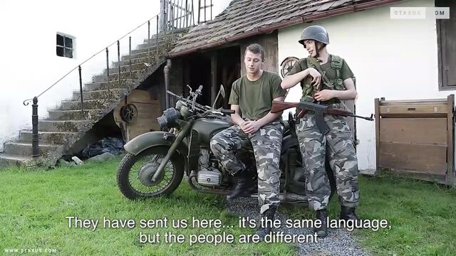 - Description: Young army recruit, Roman Smid, is feeling homesick – and no great wonder! Being stuck in the army, miles from everything that’s familiar, is never going to be a pleasant experience, after all. Fortunately he’s been teamed up with Oscar Ricci, who soon gets the lad in a much more upbeat mood by giving him a cigar to puff on. That, however, is nothing compared to what he subsequently produces to help lift his downcast buddy – namely his thick, meaty, uncut cock! Needless to say, Smid responds in exactly the way that you’d expect a dick-crazy youth like him to respond – falling to his knees and slurping on his mate’s ramrod, whilst Ricci takes his turn at smoking.Soon afterwards, the roles are reversed – Smid leaning against an army motorbike, whilst Ricci deep-throats his pal’s closely shaved knob. It’s the perfect set-up for a session of unrelenting hardcore action; and suffice it to say that it isn’t long before Smid is asserting his dominant position by first rimming his mate’s ass-hole, then shoving every fat inch of his dick inside his tight little pucker! If this was Ricci’s objective from the start then it sure as fuck works dividends.Before you know it, the horny pup is being given the banging of his life; culminating in him taking an almost unforgiving pounding down on the grass. The use of such heavy artillery is only ever going to have one result from boys like these, of course; and it’s not long before Smid is rupturing his nads all over his buddy’s face. Finally, Ricci adds a little bit of kink by creaming his heavy, sticky wad across Smid’s army boots!