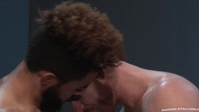 Caleb Daniels hails from Philly, loves rimming, and relishes an intense, connective rapport with his sexual partners. Bennett Anthony is originally from South Carolina, enjoys running, and likes to get aggressive. As they make out and stroke each other's cocks, they establish a deep, intimate connection. Bennett eagerly gets down on his knees and inhales Caleb's cock, which puts Bennett's furry ass on display. Caleb then buries his face in Bennett's ginger bush, and his hairy ass spreads wide. Bennett bends over a chair and Caleb pushes his scruffy face into Bennett's ginger crack. Caleb's expert rimming makes Bennett gasp and moan with pleasure. Standing up, Caleb thrusts his cock into Bennett's receptive ass. With Caleb's big cock filling him up, Bennett flexes his muscular body while jerking his cock. Switching it up, Caleb gets on his back and Bennett fucks him with mighty thrusts. Their cut abs and tight pecs flex as they ramp up speed and intensity. Jerking his cock, Caleb releases