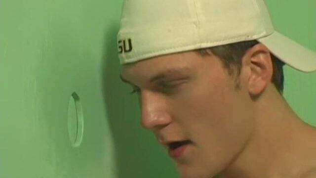 Jesse Jacobs and Kameron Scott are both at lunch in the bathrooms, having a sneaky jerk. Their attention is soon drawn to the small 'glory' holes in the wall. Jesse instantly has his rock solid dick through it with Kameron sucking on it hard! Kameron puts his super tight ass against the hole and takes a seriously good fucking from Jesse, before taking Jesse's load in his mouth!