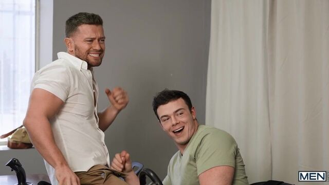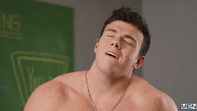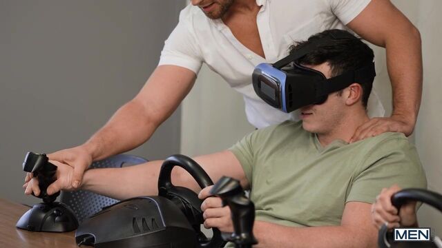 Driving instructor Johnny Donovan tries to keep his mind on the curriculum, but hunky student Clark Reid tips him a wink and mimes giving a blowjob before strapping on his VR headset. Johnny tells Clark to shift gears and watches the twink stroke his joystick, then swaps it out for his cock! Clark eagerly sucks the top, and after his fellow student hurries out, Johnny teaches Clark just how to take that dick. The instructor sucks the bottom, then drills him on his desk before bending him over to fuck that muscle ass doggystyle. Clark cums all over Johnny's chest as he rides him, then takes a facial!