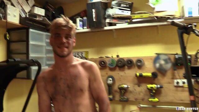 Blonde mechanic boy lifts his balls and legs during POV fucking - Czech Hunter