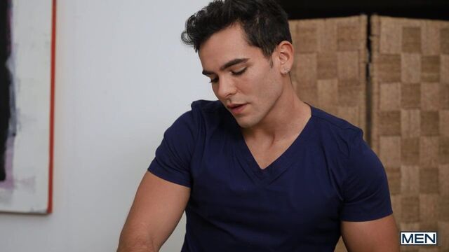 Troye Dean and his boyfriend have booked a couple's massage, and masseur Damian Night plans to go very deep. He distracts Troye's BF with hot rocks, then starts giving Troye's back and ass a good rub-down and goes deep in his hole with his fingers. Damian massages the twink's feet, getting them nice and oily before fucking them, and climbs on the table to dick Troye down. While the masseur gets to work on his BF, Troye crawls over to give him a sneaky BJ, then it's his turn to fuck Damian doggystyle. Troye really goes deep until his boyfriend gets knocked to the floor, discovering the cheating and storming out! Damian sucks Troye, then rides him, and the guys flip again as Damian pounds Troye in missionary till he cums, then shoots his load on the bottom.