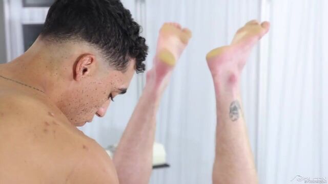 - Description: Deep in The Swords Facility, Dr. Brody Fox has been tasked with testing the physical endurance of new recruit, Amone Bane. With his hard dick completely filling the doctor's mouth, Amone has proven his cock's stamina and now must display how skilled he is orally. Amone shows his raw talents as rims, fingers, and spits into Brody's hole with the pleased doctor progressively taking deeper and deeper breaths. Ready to continue Amone's examination, Brody gets into position to ride the hopeful agent's hard cock on his hospital bed. Amone only pulls out to 69 with his examiner before resuming his bareback assessment by bending Brody over, propping his own leg up, and ramming the doctor's hole. After the stretched-out medical professional cums all over his own hair-covered body, Amone begins his final task -- draining his balls directly into Brody's mouth to test his sperm count.