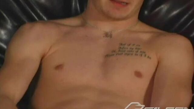 Cutie-pie Brice is back, sporting a new tattoo, a silver piercing in his eyebrow, and all awash with the excitement of ramming something up his ass. He readies himself by stroking himself until he's hard, then opens the sidetable drawer to pull out a manrammer and some lube. He finds that it's not that bad or uncomfortable yet quickly titillating as he slides the latex pole deep inside his hole while he continues to jack off. Brice makes quick work of it and shoots his load, pleased and smiling like the Cheshire Cat. And that new tattoo? Lyrics from the Dave Matthews Band: 'And if I die, before my time, Oh sweet sister of mine, do not regret me if I die.' Hey, Brice, no regrets. You kill me, Babe.