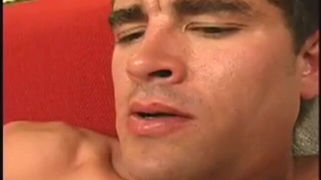 At 6'1 and with 175 tanned-pounds of strapping California prime beef, Reid is a man who says he responded to our ad on a whim, but as soon as his office tie and jacket came off, it was clear he was about to do something he had been fantasizing about for all of his 30 years, and he could not hold it back one more day. That natural exhibitionist quality is something so rare and alluring, it makes for the perfect mixture of a fresh face with a prime libido. This is a quality that some of our favorite men on MenOver30.com possess, and Reid immediately joins that special list. He casts aside his jitters along with his shirt and instantly went from newbie to porn star with all of the confidence in the world that he had something we wanted to see. From the size of the lump in his pants and the pleasure on his very handsome face, he was rubbing it, and we were as eager to see what was inside as he was to show it to us.With one hand inside his pants and the other rubbing that meat through them, Reid is as comfortable as if he was doing this at home alone on his couch in front of his favorite porn and relishing the opportunity of being the star this time for us to watch. The belt opens, the zipper goes down, his bush comes into view, and soon a thick, half-hard shaft starts to swell along with his balls. No underwear for this guy; knowing that Reid free-balls all day at the office under his suit just adds to the allure of this very good-looking and disarmingly sexy man before us. His pants around his thighs, his shirt hanging off one shoulder, he lays back on the couch looking like any doctor, lawyer or executive...anyone in a suit you ever wanted to get behind closed doors in their office...he embodies every fantasy you've ever had about a professional man. With but two or three strokes, his cock becomes rock hard and throbbing, signaling that it is time do some serious business.Already breathing heavy, Reid is now moaning, eyes closed tightly as his mind enters a private realm of sexual pleasure as he sits up and spits down on his cock and starts stroking even faster. Rolling back onto the couch, he humps away at the red leather, showing off his ass and then raising up to show off the perfect trifecta of visual delight: his hole, balls and face all in a shot that will be freeze-framed and captured in your mind forever. One thing that cannot wait for forever is that load, and with the sound of his moans and speed of his stroking, we can just feel how urgent Reid's need-to-seed is. The torment of the battle between prolonging the sensation and giving into the pressure in his balls can be felt just by looking at his quivering lips, and immediately the travel plans for that load are realized as Reid seals the deal with a handshake to his libido.