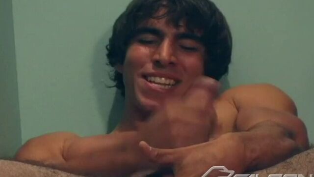 Ryan is a 20-year-old mophead from Detroit. Another straight boy with a girlfriend, another virgin to porn, but with his pistons all fired up, he's ready to show us what he's got. He looks kinda goofy at first, yet under all that hair, he's got a really good build - well-defined abs which compliment those nicely muscled arms. Okay, he's kinda cute. Ryan strips down and he's ready for action. He begins to jerk off. Eyes closed, he works himself up into an intense state. He's on his back, then on his knees, exposing his hairy ass to the camera. He continues stroking himself, marking the time with gasps and sighs. Then sitting back, he grimaces and smiles as he nears climax. He finally declares he's gonna cum and boy, does he deliver.