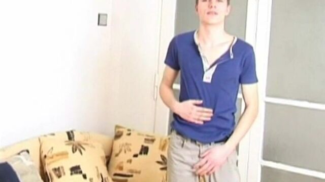 Check out Necas with his smooth boyish bod! He strips out of his clothes and shows off his uncut cock. He strokes it fast until he shoots his cum onto his flat stomach!