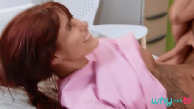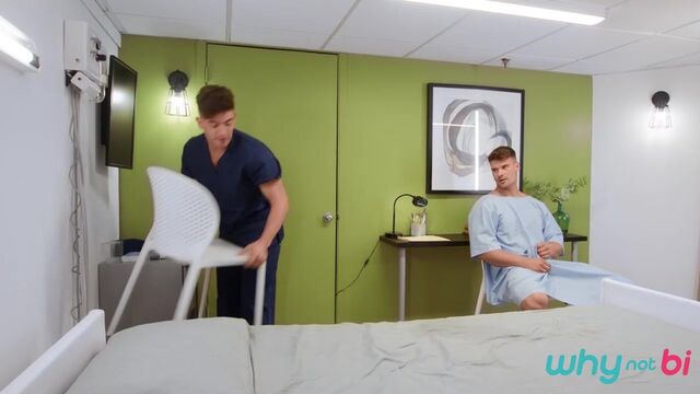 A few weeks without cumming has caused sudden testicle pain for Malik Delgaty, and nurse Trevor Brooks tells him he needs to drain those balls, stat! Trevor assures the patient he's a professional as he sucks his cock, but before the treatment is complete, he's called away. Nurse Mimi Malibu eagerly steps in, ripping open her scrubs, and Malik doesn't hesitate to fuck her doggystyle. Mimi has to leave before Malik cums, but Trevor returns, assuring Malik that fucking a man's hole is the best way to get the load out. Mimi catches Trevor in the act, and the horny nurses fight over that big dick, but the patient suggests they work together! First Nurse Mimi and then Nurse Trevor takes his cock, and Trevor cums in Mimi's mouth before Malik finally blows his load on both their faces.