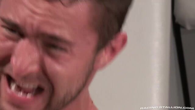 Nick Capra and Colt Rivers sneak away backstage for some hole-gaping fun. Athletic Colt can't wait to taste Nick's tasty 9' cock, so he yanks Nick's shorts to his ankles. Nick tells Colt, 'get it really wet; wax it.' Nick has a broad chest, covered in fur, and he's nearly twice the size of Colt. His nonstop barrage of nasty encouragement keeps Colt grinning and choking himself as he sucks harder. Satisfied with Colt's effort to please, Nick sends Colt up a ladder until his ass is level with Nick's mouth. Colt's balls swing and hang low as he thrusts his bubble butt out to meet Nick's eagerly awaiting tongue. Nick loosens Colt's hole as he swirls his tongue around Colt's tight center, then loosens him a bit more with his finger. Colt shivers with ecstasy and collapses onto Nick's waiting cock, grinning as it stretches him. He bounces himself repeatedly onto Nick's fat rod, each pump going deeper. Colt's glutes spread wider when Nick penetrates him all the way down to his base. Nick hoists Colt up and fucks him harder and faster, as their skin glistens with sweat. Nick takes Colt to the edge of anal endurance, and at the moment of orgasm discharges a huge load in his mouth, then kneels to gobble up Colt's spunk and take one last taste of his hole.