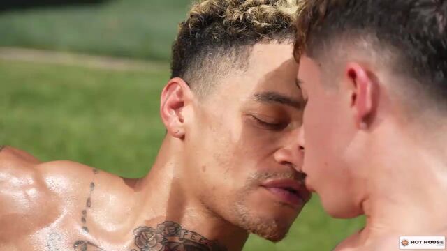 Naked outdoor loving session showing Vincent Oreilly and Sonny Blonde - Hot House
