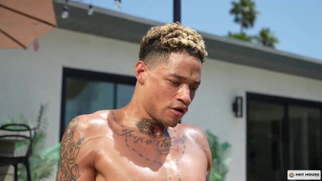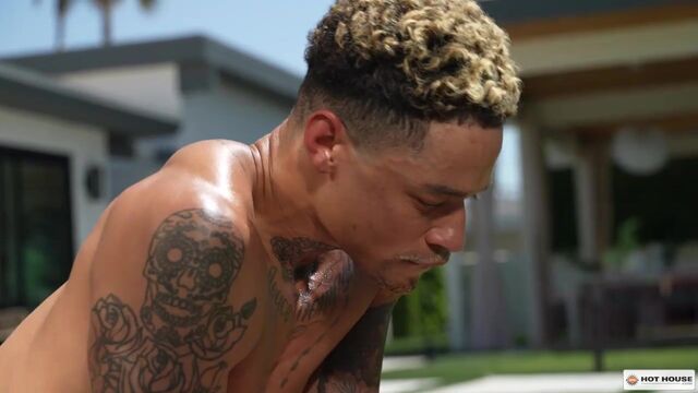 Vincent O'Reilly is wearing nothing but a revealing thong as he pops a golf ball out of his cheeks and putt-putts around with his hung buddy, Sonny Blonde. The mini-golfing doesn't last long though and soon, with the Southern California sun beating down, Vincent moves to the center of the yard to suck off Sonny's impressively big dick. Sonny reciprocates the summertime oral pleasure by burying his face between Vincent's cheeks and manhandling his ass before sliding in his girthy member. Vincent takes it from behind and then goes for a bareback ride on Sonny. Then, the duo discovers that both of their dicks are so big that Sonny is actually able to suck off Vincent while the bottom's hole rides and moves up and down his raw rod. Once Vincent is on his back, both men begin to nut all over Vincent's body so Vincent is left lying there covered only in rays of sun and ropes of cum.