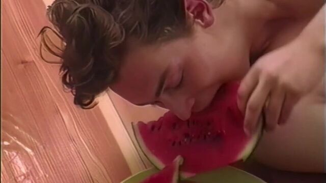 In the kitchen, Palo Cernak licks and laps Eberhardt Huhn's sweet ass, then spreads his cheeks even wider. With his massive cock-head, he slowly explores the insides of Eberhardt's hot manhole. Eberhardt's temperature and dick rise with each of Palo's thrusts until both young erupt in orgasm.