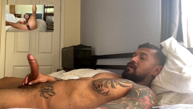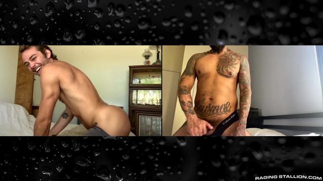 In video chat, Max Adonis tries out the anal toy that Boomer Banks sent him by mail. Both of them give a show to the other and they both cum all over themselves.
