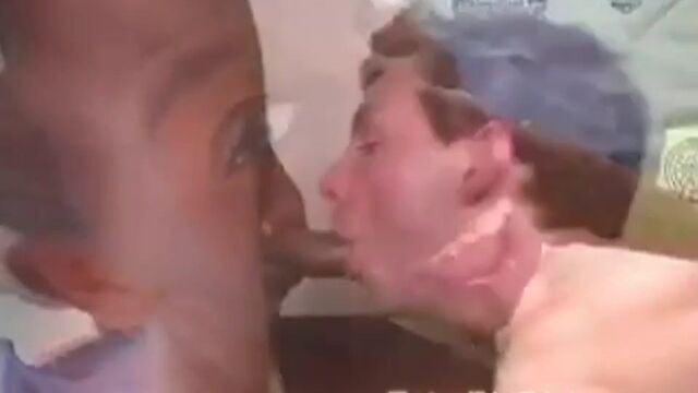 - Description: Troy's 8.5 inch chocolate dipped dick-sicle made its first appearance, if you looked quickly enough to catch the fleeting glimpses of that meat when Alex actually backed off it enough to be visible, as it gave Alex's beautiful white bubble butt its premier interracial pounding in a heavy duty toe curling encounter that left them, and judging from the amount of email we received, many of you with majorly empty nuts. In a different kind of first, a couple of weeks ago, Ryan offered up his ass to give BadBoy's 9.5 inch its first taste of what fucking a guy is all about and oh yes, BadBoy seemed to enjoy that maiden voyage literally. What could top all of that? Pick one from column A, Troy; one from column B, Ryan, and add in another 8' licorice stick belonging to Jailen to put the other end on this visual on how an Oreo can be double stuffed and still want more!It took all of three seconds for Ryan's hands to reach over to Troy and Jailen's crotches to get a preview of the almost foot and a half of dark chocolate he was about to sample in every way possible. Jailen and Troy were just as quick to get Ryan out of his pants and create a quick access route to the prized destination they both had their eyes on. All three on their knees, Ryan's briefs are ripped down and his bare ass cheeks teased by banging already huge, but still only semi hard, poles of Troy and Jailen. Troy then takes command, offering up the biggest dick in the room and grabbing Jailen and Ryan by the back of their heads, he uses their tongues to polish and lick his cock at will. Our threesome then moves to the bed where Ryan begins to double his pleasure, stuffing both of those big cocks into his hungry mouth...until he found a place where he wanted those cocks even more!Jailen helped spread Ryan's cheeks apart as Ryan lowered himself on Troy's cock, taking all 8.5 inches in a slow steady assault, sucking on Ryan's nipples before having a seat on the head of the bed and feeding Ryan his cock while Ryan bucked up and down on Troy's meat, loving every considerable inch. When Troy got to ramming, Ryan's moans echoed around the room as he fought to catch his breath while another 8' cock filled his mouth. He was soon flipped on his back and the guys flipped positions with Jailen doing pushups over Ryan and feeding the white boy his cock in the process while Troy face fucked Ryan just as hard as he had just tapped his ass. With all of that action, it was not long before it was time for the cream to fly on his knees between them. Ryan was treated to a double blast of thick white cum that covered his face and dripped down his chin to his chest where his own blast soon followed. Ryan definitely got his sweet tooth, along with his mouth and ass, filled that day and believe it or not, he is ready for more!