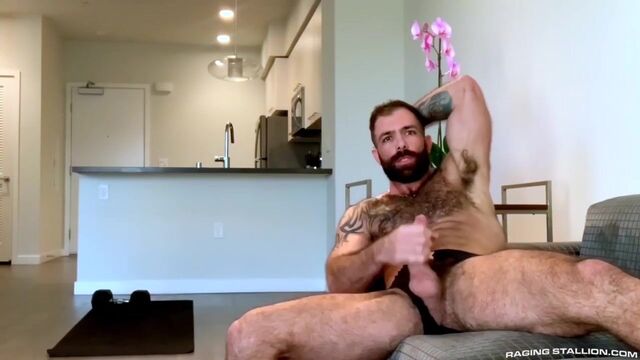Beefy Jake Nicola works out and masturbates - Raging Stallion
