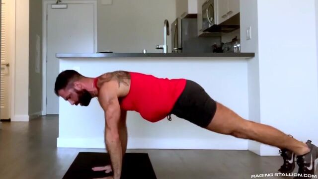 Need to get a good workout in but don't have access to a gym right now? Get ready to sweat with Jake Nicola in an intense 'Pump' session. Burn through a series of high intensity cardio and body weight exercises to get you flowing to all the right places and join Jake for the official jerk off cool down. If working out gets you as horny as Jake, sit back and grab your cock while Jake works his meat until he shoots a thick load all over his hairy torso.