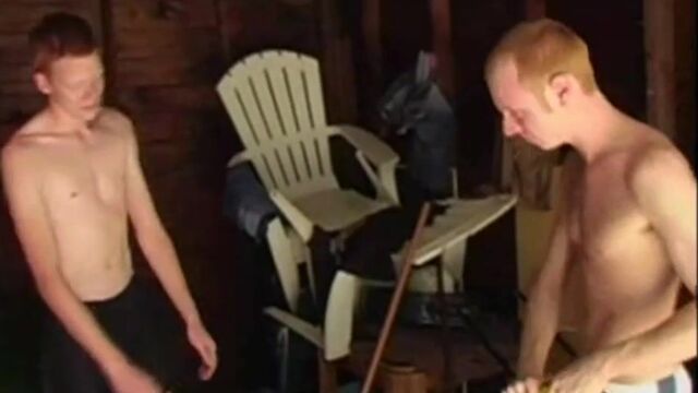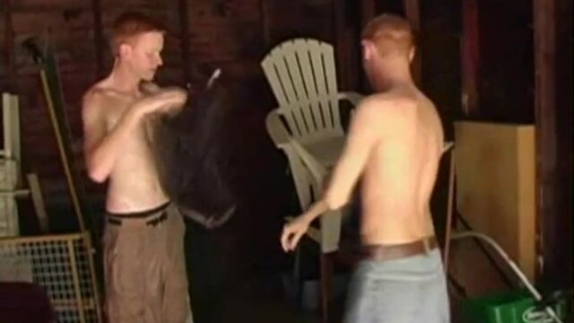 The term 'brotherly love' takes on new meaning in this scene, featuring fair skinned, red-haired 'brothers' Patrick (19) and Jarrin (21). Dad's at work and he told his boyz to clean up the garage. Boyz being boyz, they goof off and eventually end up