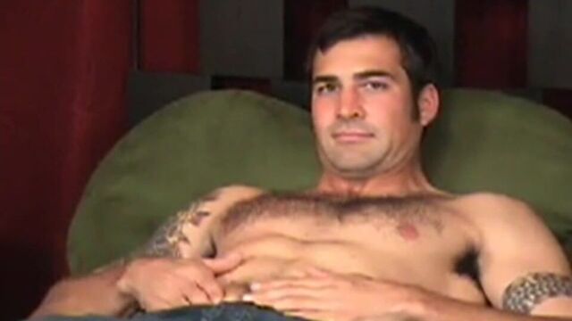You may have fallen in love with him in Ocean's 11 or 12 or been desperate for his bedside manner in E.R. and while we may have not gotten George Clooney exactly, our version, Rob, is a Dr. Ross look alike who finally unveils that object of lust that Georgie boy kept hidden under those scrubs. With the same classic leading man good looks, our hairy chested heart throb makes love to the camera like it is his big break screen test but spared no time in getting naked: he clearly knows the role and seems anxious to show he is definitely UP for it.Inked on both arms, he ribs his chest and his bulge as if taking you on a journey with...you can almost feel the fuzz tickling your fingertips and something more than just a little hard lurking just below the fly. He rips out his belt like a softball Dad finally having the house to himself and as he pulls his throbbing meat out of the fly, he is clearly ready to share his quality time with us. His cock is cut perfectly, and as he kicks off his shorts, we can see his has heavy balls, hairy legs and thick dark bush as well.That cock head is glistening with precum as his baby makers, looking like large walnuts now, dance in their sack, keeping a steady supply of natural lube. He invited the camera in closer and closer before rolling over and showing off an ass that is just begging for a touch, a slap, and a lick. As he starts to gyrate on the pillow below, you want to give him the deep fucking he is giving his imaginary lover underneath while never blocking our view of that now extremely bloated cock head. He quickly rolls over and his deep moans let us know its time to call a 'Code White' as he blasts his load all over his hairy lower abs.