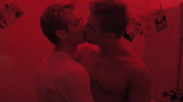 Blond Jackson bottoms for fair haired muscular Favre. Mutual cocksucking is followed by Jackson bouncing up and down on Favre's big uncut cock. Jackson cums over a bench then sucks and wanks Favre until he takes the load on his face.