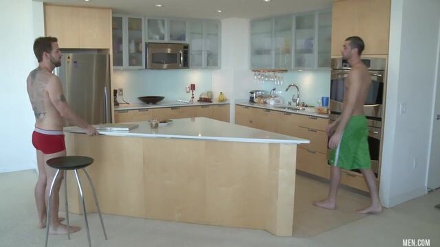 Kitchen quickie with horny Jake Steel and Preston Steel - Str8 to Gay
