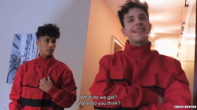 - Description: The construction worker I met a few days ago promised to bring a co-worker interested in some easy cash. I decided to have a look first and visited them during work. They were both so sexy in their dusty work clothes... I quickly agreed and couldn't wait to get my hands on them both. The new guy was a bit inexperienced and shy but we took good care of him. I think my friend wanted to fuck him for some time and this was a perfect excuse. First, I enjoyed watching them playing with each other. It was so hot I couldn't take it for too long. I let them both suck my cock at the same time while thinking about all kinds of stuff I could do to their sweet asses.