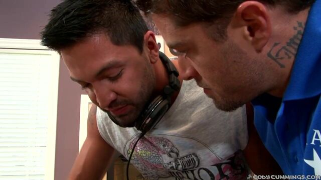 Dominic Pacifico is DJing an upcoming party at the Next Door shoot house. An extravaganza to end all monster bashes, he's just setting up when the A/V guy comes in to do his job. But this isn't no ordinary video expert. No sir. Hired on this job is none other than Cody Cummings, cable guy extraordinaire. No one better at handling your cables. Well before too long wires aren't the only thing making a connection, if you know what I mean, and it turns out, Dominic isn't so bad at handling cable himself. Enjoy!