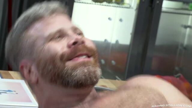 Bears/daddies Wade Wolfgar and Cain Marko fuck in the kitchen - Raging Stallion