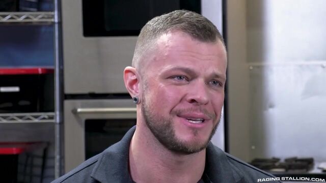 Someone' has reported the bareback bakery to the Health Department, and Wade Wolfgar has to come down to work for a surprise spot check by hard-ass inspector Cain Marko. The hunky bearded daddy rattles off a list of infractions as he grills Wade for answers, then offers to go soft on him if Wade will go hard in return. Wade gives in and gives Cain what he wants: a thick fat uncut cock pummeling his muscular manhole bareback after a thorough throat stretching face fuck. The blond beefcake gets bent over a butcher block for some quality ass eating then the chef's sturdy rolling pin of a monster dick drills the inspector's guts. The pile driving continues till Wade blasts a load, passing inspection with flying cum -- and colors...or so he thinks.
