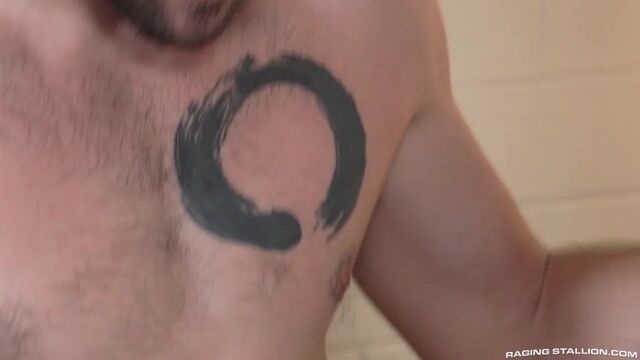 Are you into foot worship? So is hairy and hung stud Ricky Larkin, who can't get enough of sniffing, licking and pressing his face into humpy young stud Dante Colle's, size 10's. These two horny and hairy men are hot for each other, and Ricky wears Dante like a hat, burying his face in Dante's furry crack and priming his hole for a deep dick bareback fucking. He jackhammers Dante and sees how fast Dante gets hard as he bounces and helicopters on his enormous dong. Moving to the bed, Dante returns the favor, his thick cock stretching Ricky wide open. With little smiles and nods and lots of eye contact, they truly connect, and Dante squeezes a load out of Ricky's huge balls onto his rippling abs, then frosts Ricky's crotch with his shuddering orgasm, leaving both sweaty, sticky and satisfied.