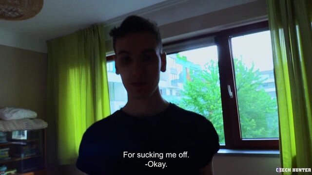 - Description: It was a nice summer morning, and I just couldn't handle it anymore. I wanted to fuck. This was my lucky day because soon I noticed a dude running. He was actually training for a marathon, his eyes fixed on the prize of 10 000 Crowns. He was too focused and didn't want to bother with me. I had to get his attention first. And what could possibly work better than cash? Once he got greedy enough, it was easy to move to my place and make him try different ways of earning money. I really liked his thick cock and nicely shaped body. His mouth and tongue also felt pretty amazing. But his ass was by far the best part. Being nicely tight and sensitive, it took a while to adjust to my horny boner. Once the guy got used to it, he enjoyed the ride immensely and even cummed while being fucked.