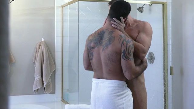 Getting fresh and clean, towering stud Wade Wolfgar soaps and lathers up as his bearded man Jake Nicola grooms in the mirror, sneaking peeks at his bathing buddy in the shower. Wade comes out wet and ready to take Jake on a throbbing thrill ride and fill his gaping maw with Daddy's warm load. To get there, they steam up the entire bathroom with a slow and sloppy, deepthroat face-fuck. Jake gets Wade's humongous uncut dick solid as rock before kicking back on the edge of the tub so Wade can service Jake's achingly hard shaft and heavy ball sack. He gets bent over the sink while Wade probes and tongue-teases Jake's furry manhole. Wade pushes him back on his knees and Jake finishes Wade off with a satisfying splatter. Jizz dripping off his smiling face, Jake pops just as hard.