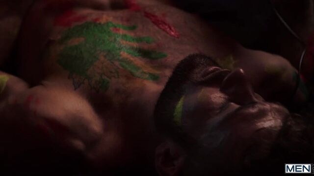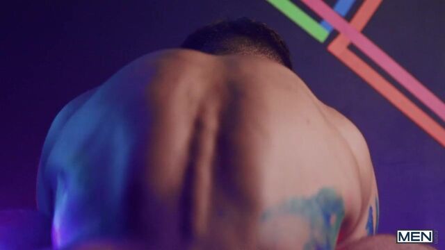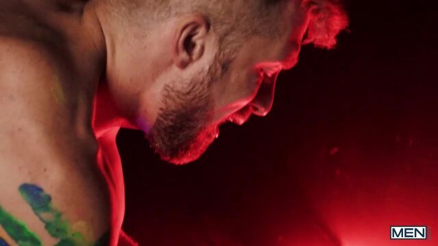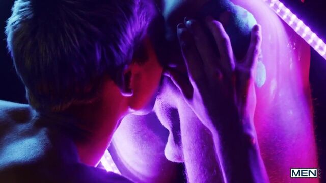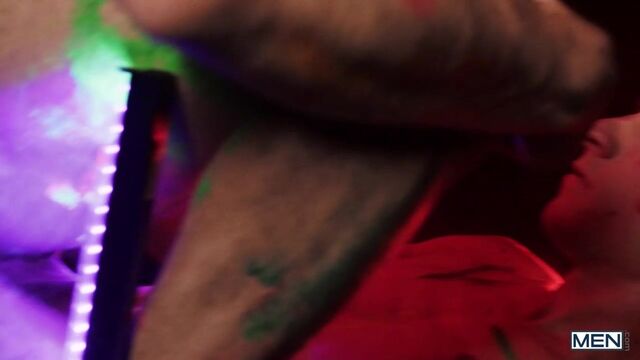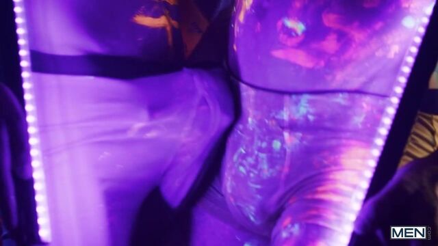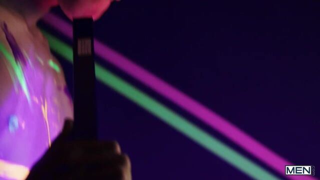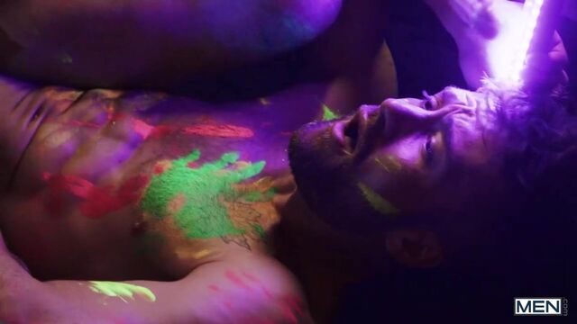 At the blacklight rave, Olivier Robert and Theo Brady dance under the lights, their hard bodies adorned with neon paint that tempts them to let their hands explore each other. Olivier sucks Theo, and Theo rims the bottom, then bends him over to penetrate his hole. Olivier rides the top on the floor and orgasms as Theo drills him on his back, then Theo shoots a massive neon load on the bottom's face!