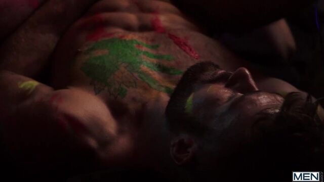- Description: At the blacklight rave, Olivier Robert and Theo Brady dance under the lights, their hard bodies adorned with neon paint that tempts them to let their hands explore each other. Olivier sucks Theo, and Theo rims the bottom, then bends him over to penetrate his hole. Olivier rides the top on the floor and orgasms as Theo drills him on his back, then Theo shoots a massive neon load on the bottom's face!