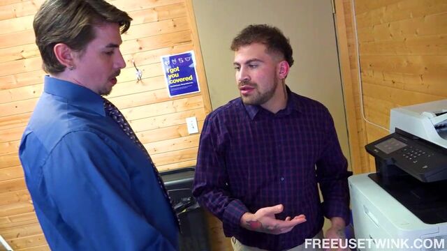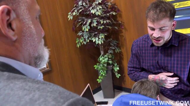 Jack Hunter and Keith Foxxx in a freeuse office 3some masterpiece - Freeuse Twink