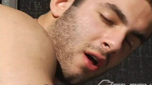 Shane Erickson is horny and needs something quick to take the edge off. With no hesitation he pulls his cock out to jerk off. Orlando Dawson promptly joins in, gobbling down Shane's prick. Orlando then gets Shane to rim his hole before letting him pile-drive deep into it, putting on quite a show for the neighbors.