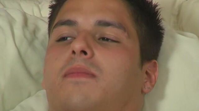Hot sports jock Steve Stella is having a hot wank watching his favorite gay porn movie! He jerks his dick faster and faster, starting to finger his tight little hole. Soon his legs are up in the air and he has his finger all the way in his cute tight ass. Getting closer he moans louder until he shoots over his ripped chest!