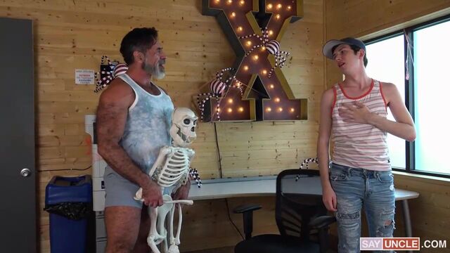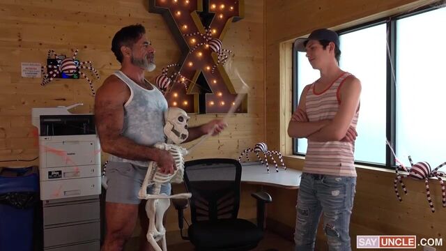 Dakota is spending a fun day out with his stepdad Lawson. After going to the cinema together, Lawson needs to run a quick errand at his office, so he takes Dakota with him. He also takes advantage of the situation to prank his stepson with spooky stuff, as the office is filled with Halloween decorations. The boy is having a fabulous time with his stepdad and, pranks on the side, he really wants to show him how happy he is after doing so much stuff together. And what better way to show his gratitude than letting Lawson pound his juicy ass?
