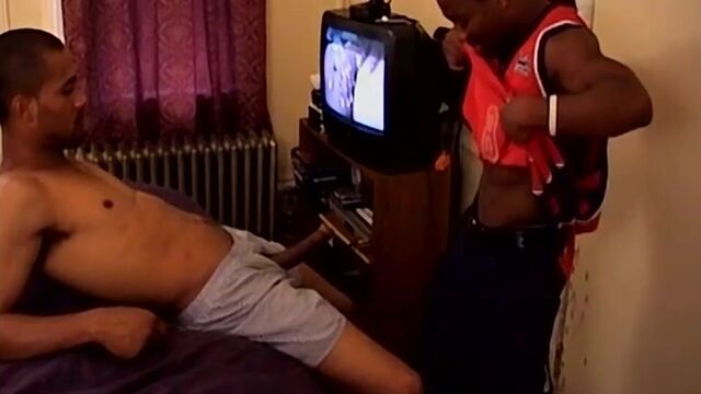 Shorty J needs as much huge cock as he can get and Alejandro has exactly what he craves. Not many cock suckers can take as much dick down their throats as Shorty J can, doing a great job on Alejandro's massive man meat before bending over to take a good, hard, deep ebony ass fucking. Then Alejandro fucks Shorty J to the finish line in missionary fashion!