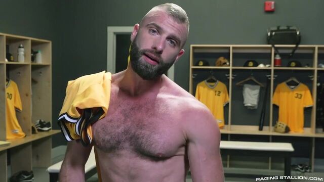 - Description: During the Stallions game Anthoni Hardie slips into the locker room to sniff the team's dirty jocks. He hits the mother lode when he finds a laundry bin stuffed to the brim with old smelly jocks. Ball players Nigel March and Donnie Argento catch the culprit in the act. When Anthoni asks for a couple to take home, Nigel offers up his own sweaty sack for Anthoni to sniff. Anthoni gets on his knees between the two hung baseball players and goes back and forth sucking each of their musky dicks. Donnie wants in on the ball action and moves past first base to get Nigel's thick cock down his throat. The hunks form a rim train with Anthoni in the middle, both sucking ass and getting eaten out. All the ass eating gets Donnie in the mood to fuck bareback and he moves to the scoring position with his ass in the air. Nigel steps up to the plate and drills Donnie hard, sinking his cock deep into his teammate's open, raw ass. Anthoni feels left out and bends over under Donnie to give Nigel all-access to two tight holes. Nigel plugs both studs hard alternating holes until Anthoni flips over to watch his aggressor fuck him deep. Nigel hits just the right spot and makes Anthoni cum while he's getting fucked. When Nigel sees Anthoni's mess, he pulls out and blasts a load all over Anthoni's thick, black pubes. Nigel finishes and goes directly in for a double play when he slides his cock back into Donnie and fucks his buddy until Donnie slathers himself with his creamy white cum.