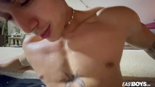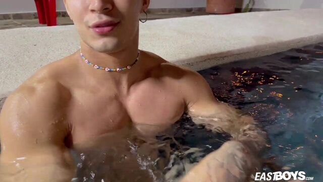 Billy Jasson rests in water while receiving a nice HJ - Eastboys