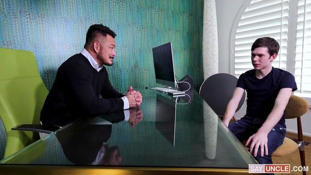 Dakota is struggling with sex addiction and seeks therapy to gain control over his urges. Dr. Goken helps him uncover the underlying causes of his behavior and recommends desensitization therapy to help him overcome his addiction. Despite the therapist's guidance, the young man finds it difficult to resist temptation until he loses control and ends up pounding Dr. Goken’s ass.